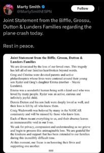 Greg Biffle And Family Lost In Plane Crash, Additional Victims Identified